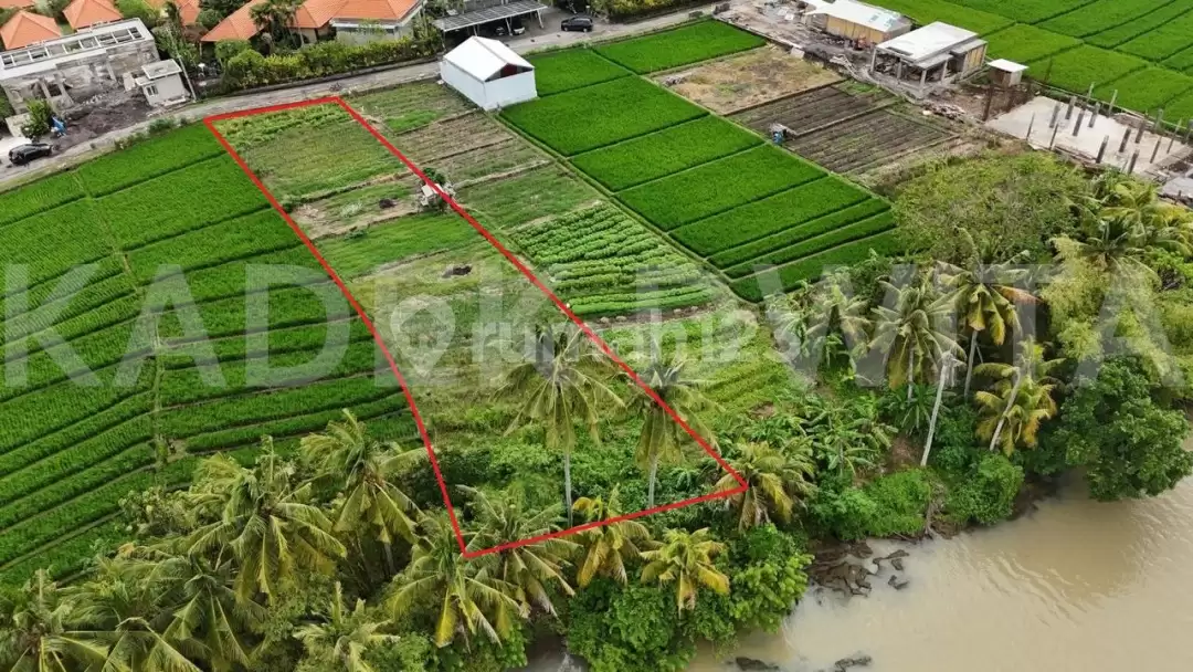 Lokasi menghadap selatan dan berbatasan langsung dengan sungai (los sungai), menjadikannya sangat ideal untuk pembangunan villa tepi sungai, resort, atau destinasi wisata alam tropis.